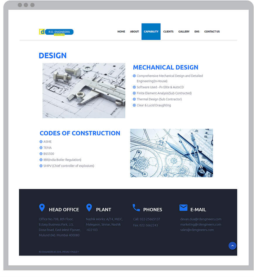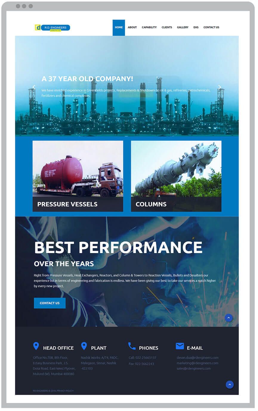 RD Engineers are into the business of fabricating custom built equipments for core sector industries like Oil & Gas, Fertilizer Plants, Power Plants and Offshore Platforms. Our job was to create a professional looking website that explains everything they fabricate in the most simplest form. The content for the website is crisp, to the point and covers all their requirements.