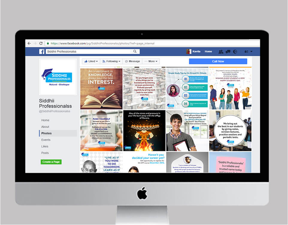 Siddhii Professionalss is a commerce tutorials that hails from Mulund, Mumbai. The requirement was simple - to get brand visibility online. Our prime target for the brand has always been to get them mileage through the existing students and the potentials students. We manage the social media marketing and offline marketing collaterals for the brand using our skills and expertise.