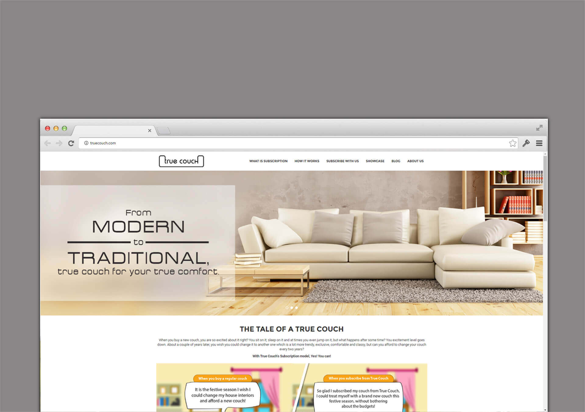 True Couch is an online store, which is up to the trend and has a variety of products to offer in Furniture industry. Specializing in couches and having a very unique subscription plans for it, we have helped them to create their branding and design various marketing collaterals. We have also developed their ecommerce portal and strategy for social media marketing, which has helped them to get great visibility in the market.